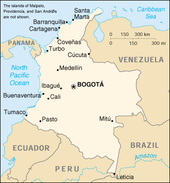 Colombia (república) (nombre oficial, República de Colombia), república ubicada en el noroeste de Sudamérica, limita al norte con Panamá y el mar Caribe, al este con Venezuela y Brasil, al sur con Perú y Ecuador, y al oeste con el océano Pacífico. Colombia es el único país de América del Sur con costas tanto en el océano Atlántico como en el océano Pacífico.